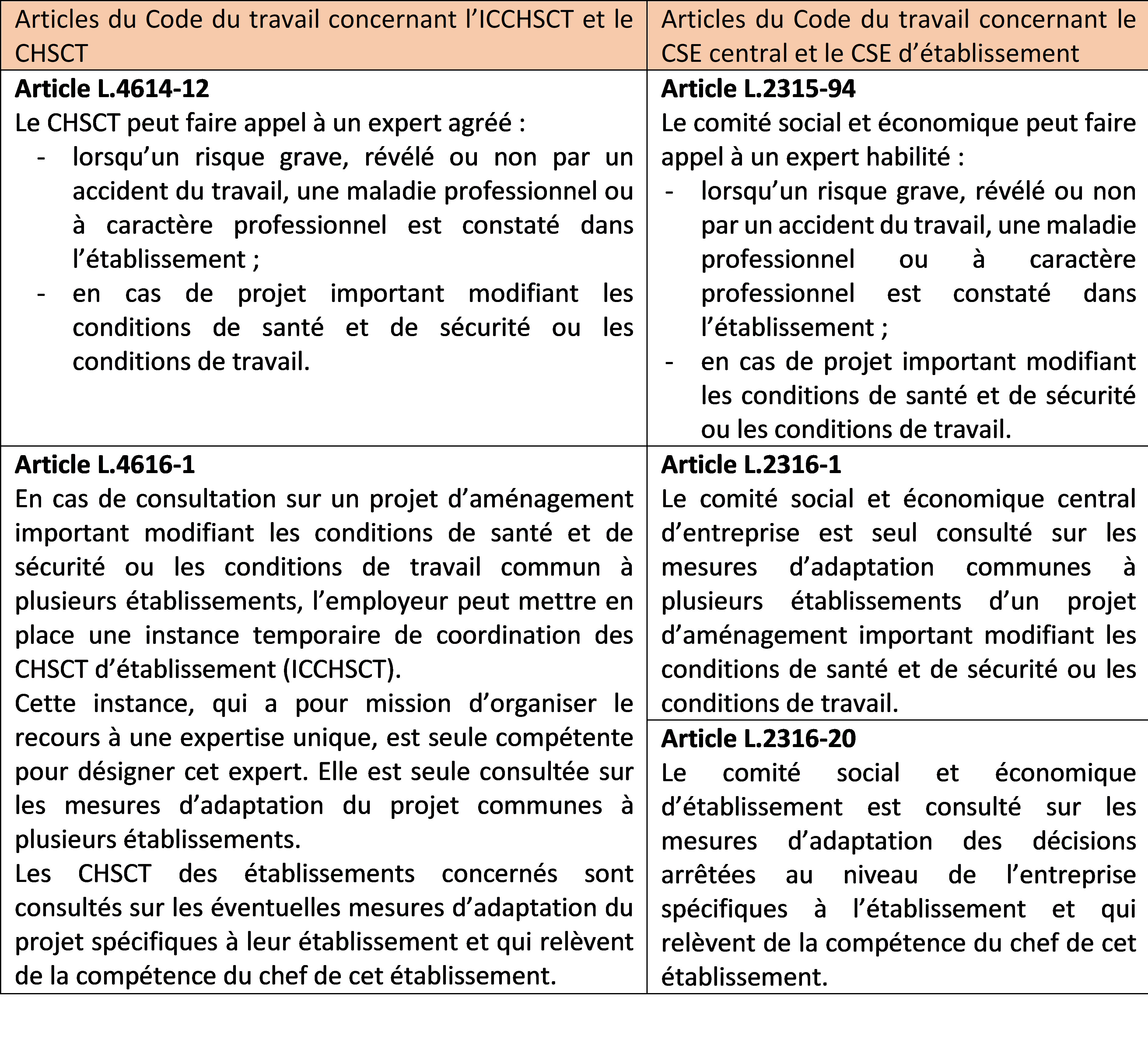 Rappelons que la création de l’ICCHSCT devait empêcher, en cas de projet de réorganisation ou de restructuration touchant une entreprise possédant plusieurs établissements, que chaque CHSCT fasse appel à un expert agréé. Seule l’ICCHSCT peut faire appel à l’assistance d’un expert. En l’absence d’expertise décidée par cette instance, les CHSCT des établissements concernés ne peuvent y recourir pour cette même consultation.